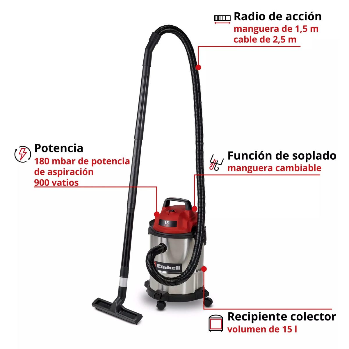 Longitud de la manguera de aspiración: 1.5 m