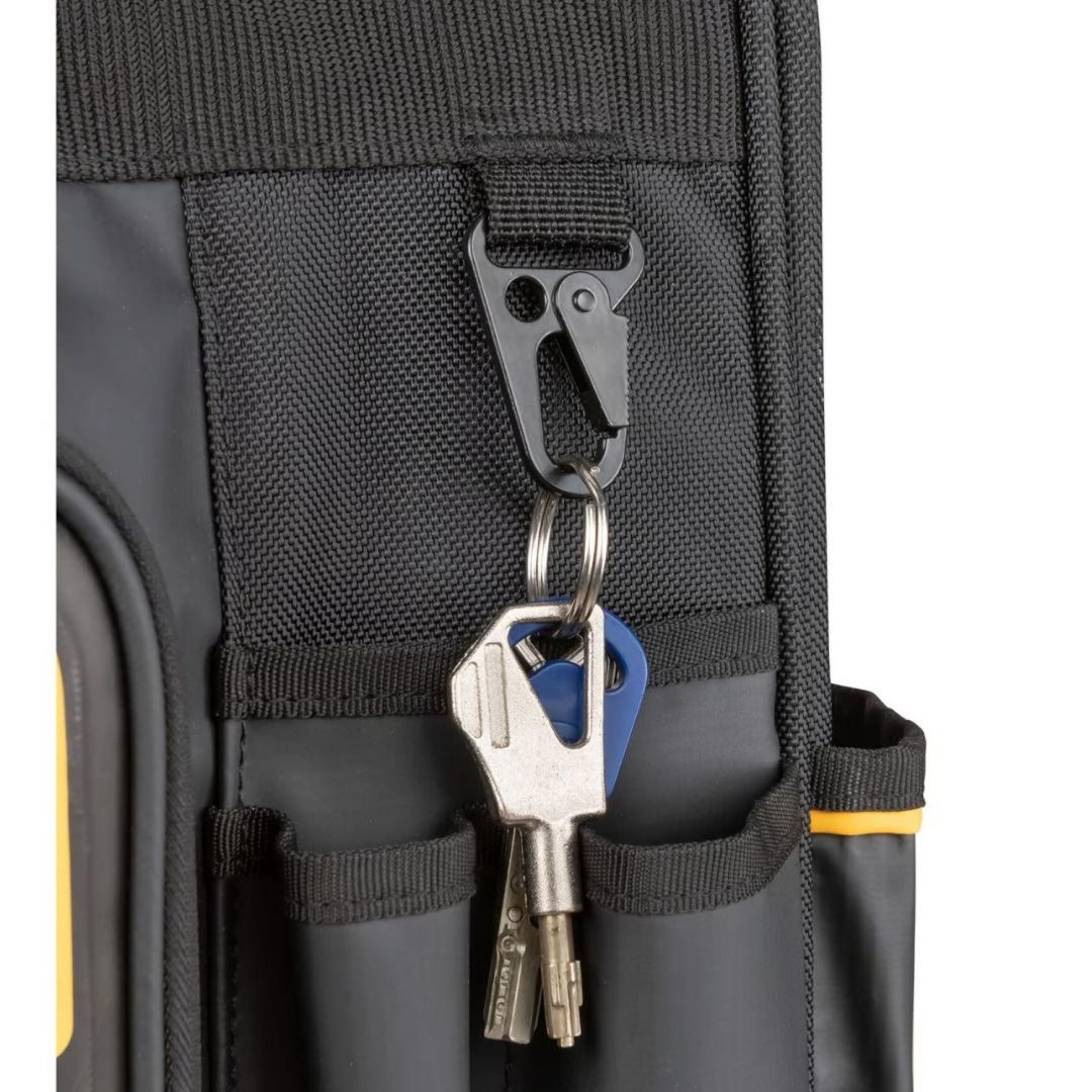 • Cremallera de cierre rápido: Guarde y recupere herramientas rápidamente, incluso con guantes, con el tirador ergonómico de la cremallera en forma de U.